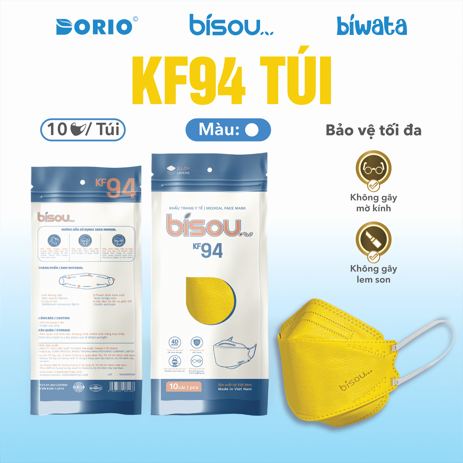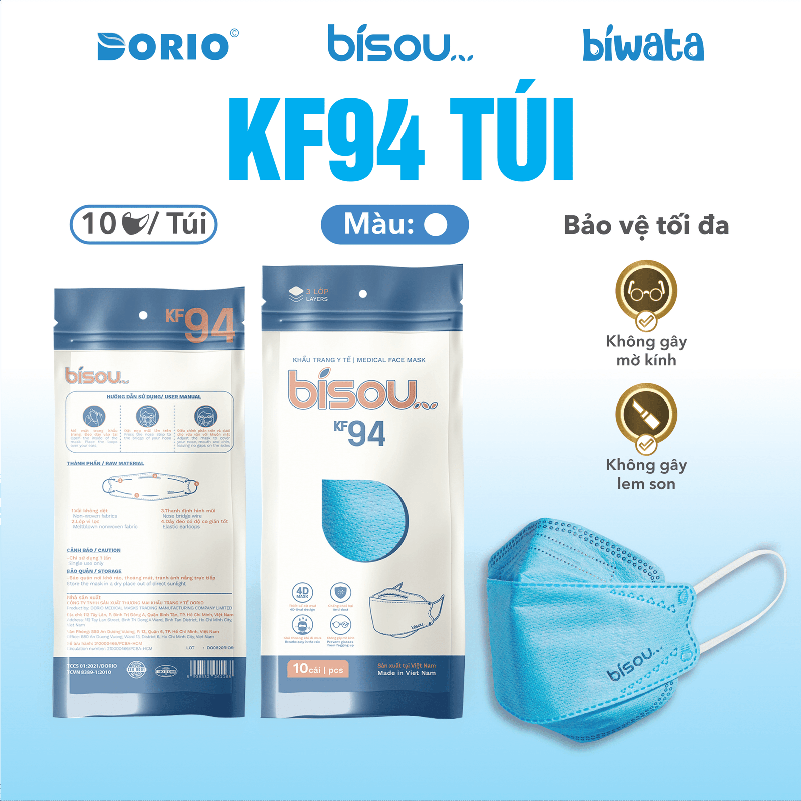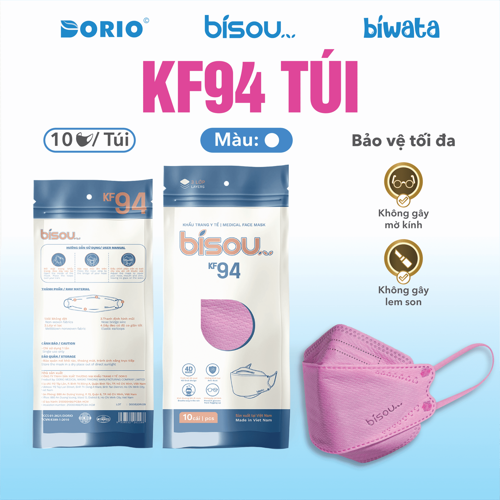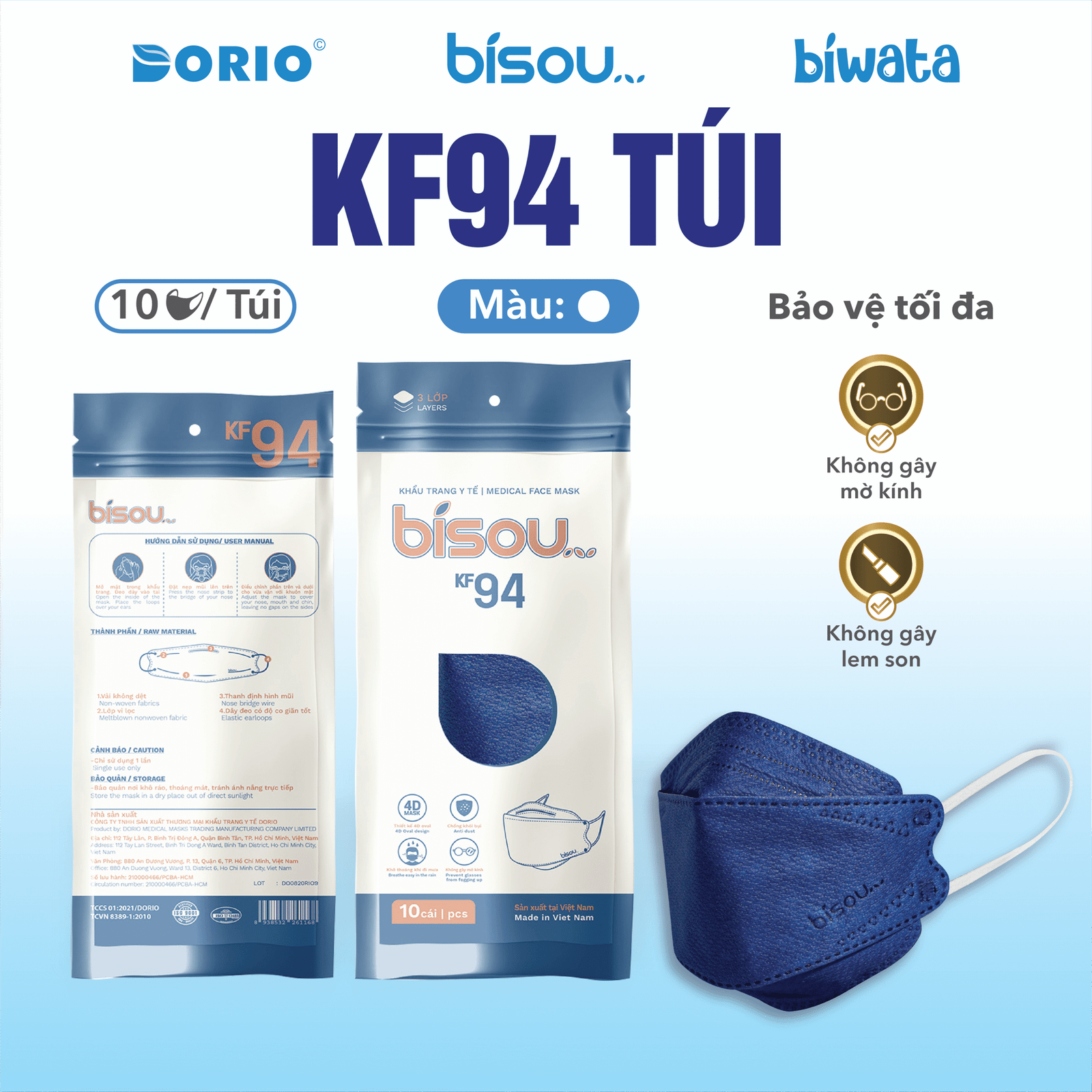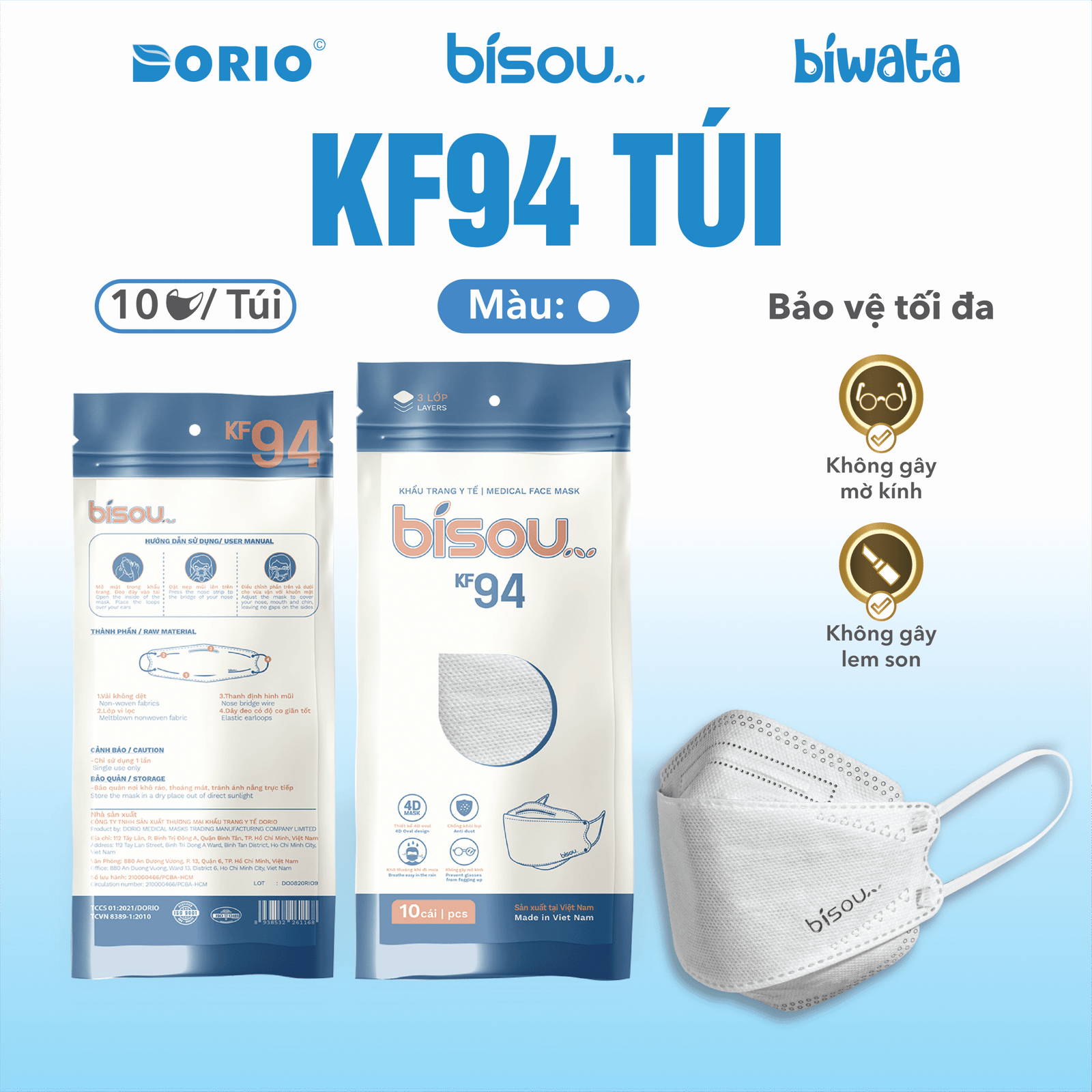 - Tên sản phẩm: Khẩu trang cao cấp KF94 túi Bisou